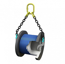 При такелажных и складских работах, монтаже кабельных линий нередко возникает необходимость перемещения катушки с кабелем в горизонтальном положении. Выполнить эту операцию помогают захваты для горизонтального подъема барабанов, позволяющие легко и надёжно зафиксировать груз и безопасно транспортировать его. В конструкцию устройства входит пара боковых зацепов, закрепляющихся на двух ветках цепного стропа. Подвесная система может быть включена в комплект поставки или приобретаться отдельно. По согласованию возможно изготовление под заказ цепей другой длины или конфигурации.