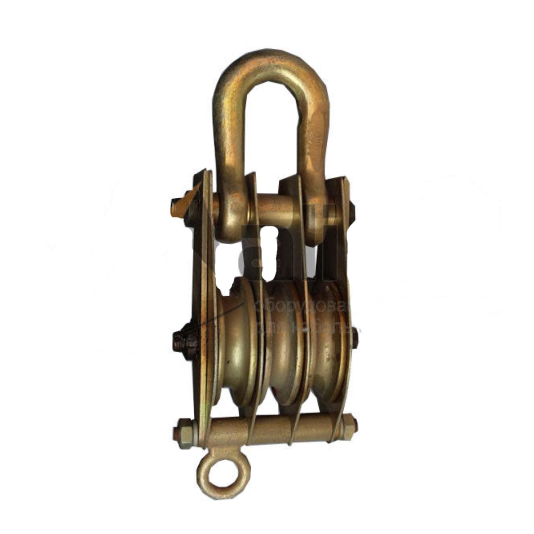 Блок монтажный (отводной) с ушком МБ 30-3У (3 тонны, 3 шкива) применяется для подъема груза на опоры электропередач при выполнении монтажных работ. Широко распространено применение блоков в промышленности, при проведении грузоподъемных и такелажных работ, для изменения направления движения троса и снижения тягового усилия грузоподъемных механизмов.
