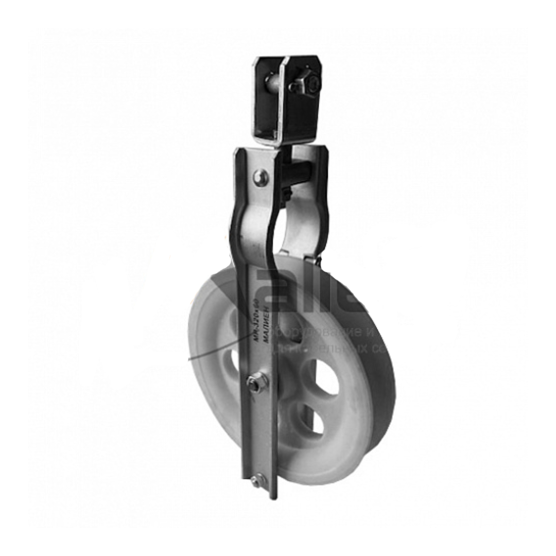 Одинарный раскаточный ролик МР-320х60 арт. 883857 применяется для подвески или ремонта провода АС, СИП, оптического кабеля или грозозащитного троса по опорам воздушных линий электропередач, линий уличного освещения, контактной сети железных дорог и городского электротранспорта с пролетами до 550 метров.