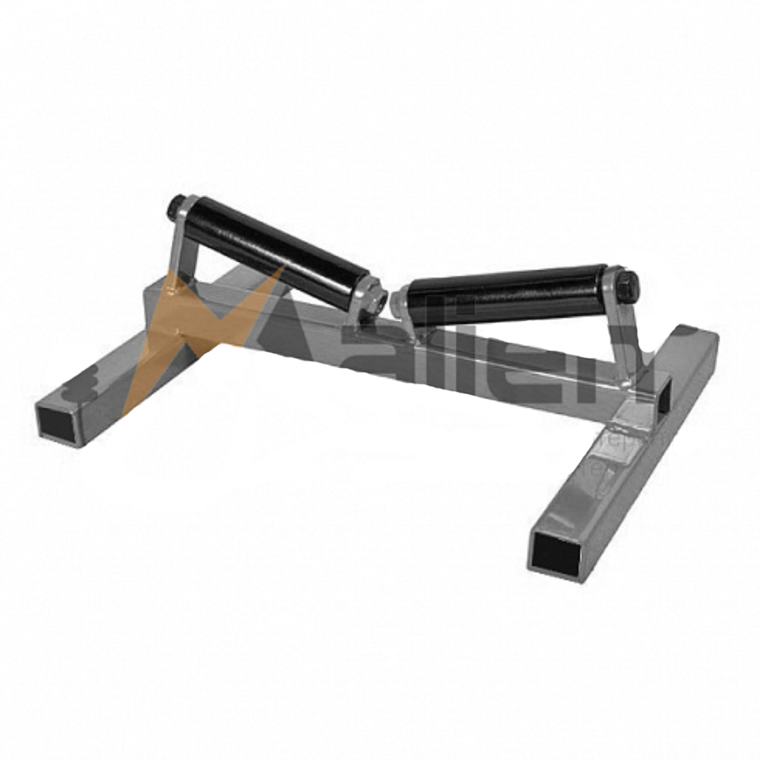 Рама трубного ролика изготовлена из стальной толстостенной трубы и имеет в основании технологические отверстия для фиксации ролика к рабочей поверхности.