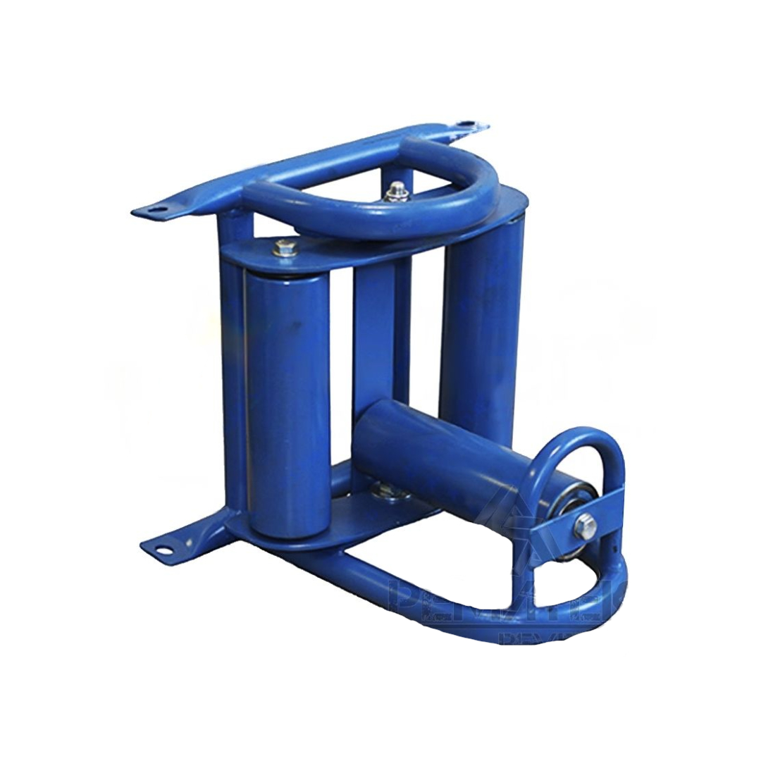Ролик для кабеля РКУ-160М имеет крепкую трубчатую раму, конструкция которой позволяет соединять между собой с помощью фиксирующих штырей данные ролики в цепи для прохождения сложных или затяжных углов поворота кабельных трасс.