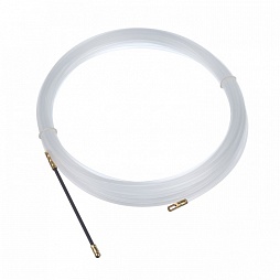 Нейлоновые кабельные протяжки марки оснащены фиксированными, несъемными наконечниками - с одной стороны прутка установлена гибкая насадка для проталкивания протяжки в кабель-канал, с другой - наконечник с отверстием для крепления закладываемого кабеля или троса-лидера.