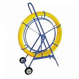 Компания предлагает устройства для протяжки кабеля, выполненные из стеклопрутка с полимерным покрытием. Изделие поставляется в комплекте с металлической кассетой и каркасом, выполняющим функции стойки для разматывания и снабжённым колёсными опорами для удобства передвижения в рабочей зоне. В маркировке модели отражены диаметр и длина прутка, а также тип устройства. Так, УЗК 11/150 на тележке – это стеклопруток диаметром 11 мм и длиной 150 м, кассета с которым закреплена на оси передвижной конструкции.
