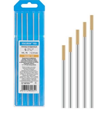 Электрод вольфрамовый золотой WL-15, Ф 2,4 мм (набор 5 шт) SOLARIS