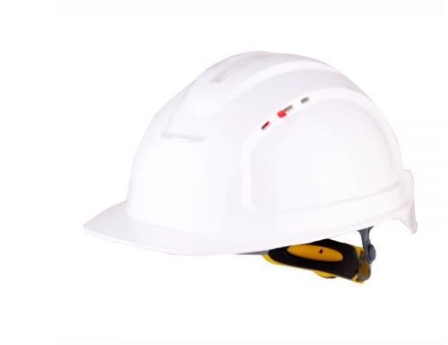 Корпус выполнен из материала Termotrek. Внутренняя оснастка ЭТАЛОН с тканными амортизационными лентами, несущая/ затылочная лента с плавной регулировкой RAPID. Пазы в корпусе каски для совместного ношения с защитными лицевыми щитками с креплением на каске и наушниками противошумными с креплением на каске. В комплект касок Абсолют входит адаптер с держателем для очков открытого типа, кронштейны для крепления щитков КБТ ВИЗИОН, текстильный подбородочный ремень с креплением к корпусу каски в 4-х точках и обтюратор.