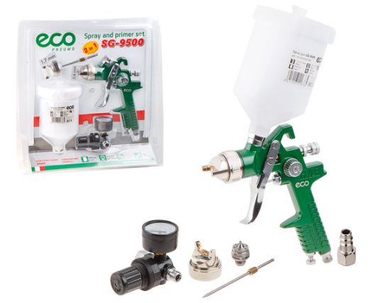 Краскораспылитель ECO SG-9500 с манометром (HVLP, сопло ф 1.4, 1.7 мм, верх. бак 600 мл, блистер)