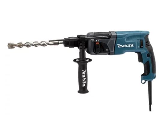 требляемая мощность: 780 Вт Мощность выходная: 390 Вт Макс. выходная мощность: 550 Вт Тип питания инструмента: Сеть переменного тока 220 В Тип двигателя переменного тока: Универсальный коллекторный двигательНомер щеток электродвигателя: CB-325Энергия единичного удара: 2,4 ДжОбороты на холостом ходу: 0 - 1100 об/мин Количество ударов на холостом ходу: 0 - 4500 уд/мин Параметры обработки материалов:Макс. диам. сверления в бетоне: 24 мм Макс. диам. сверления в дереве: 32 мм Макс. диам. сверления в металле: 13 ммКрепление оснастки: SDS+Крепление дополнительной рукоятки: Шейка диам. 43 ммДвойная изоляцияЭлектронная регулировка оборотов Расцепляющая муфтаРеверсСфера применения: Сверление отверстий Дерево мягкое / Бетон / Ламинат, ЛДСП / Бетон армированный / ДСП, ДВП, ОСП, фанера / Плитка керамическая / Стекло / Мрамор / Кирпич / Гипсокартон / Дерево твердое / Цветные металлы / Сталь / Гранит / Сталь нержавеющая / Пластик термопластичный / Гипсовые блоки / Керамогранит / Пластик армированный Разрушение, демонтаж Мрамор / Бетон армированный / Гранит / Кирпич / Керамогранит / Бетон / Плитка керамическая Длина: 362 мм Длина кабеля: 2,5 м Вес: 2,8 кгКомплектация:Ограничитель глубины (1 шт.)Боковая рукоятка (1 шт.)Чемодан (1 шт.)Особенности:Боек стал более долговечнымБольшой сальник предотвращает утечку смазки между корпусом двигателя и корпусом редуктораЯкорь поркыт зашитным слоем лака предотвращающим его повреждение от пыли и строительного мусораРукоятка и корпус редуктора с мягкой резиновой накладкой обеспечивает полный контроль над инструментом и предотвращают механические воздействия.Изменяемая скорость вращения и новая конструкция реверса продлевает срок службы счеток в 2,7 раза.Отсутcтвие удара на холостом ходу увеличивает срок службы ударного механизмаРасцепная муфта предотвращает рывок перфоратора при заклинивании бура в момент работыДва режима работы: сверление и сверление с ударом