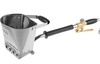 Хоппер-ковш предназначен для нанесения строительных смесей (штукатурки, бетона, глины) на поверхность бетонных или железобетонных конструкций под давлением сжатого воздуха, что дает плотное взаимодействие наносимого состава с поверхностью, заполнение трещин, раковин и пор, а также значительно ускоряет нанесение смесей по сравнению с ручным способом.