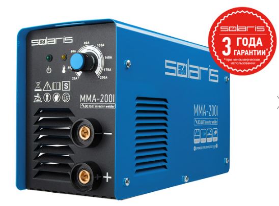 Инвертор сварочный SOLARIS MMA-200I (230В; 20-200 А; 70В; электроды диам. 1.6-4.0 мм; вес 3.4 кг)